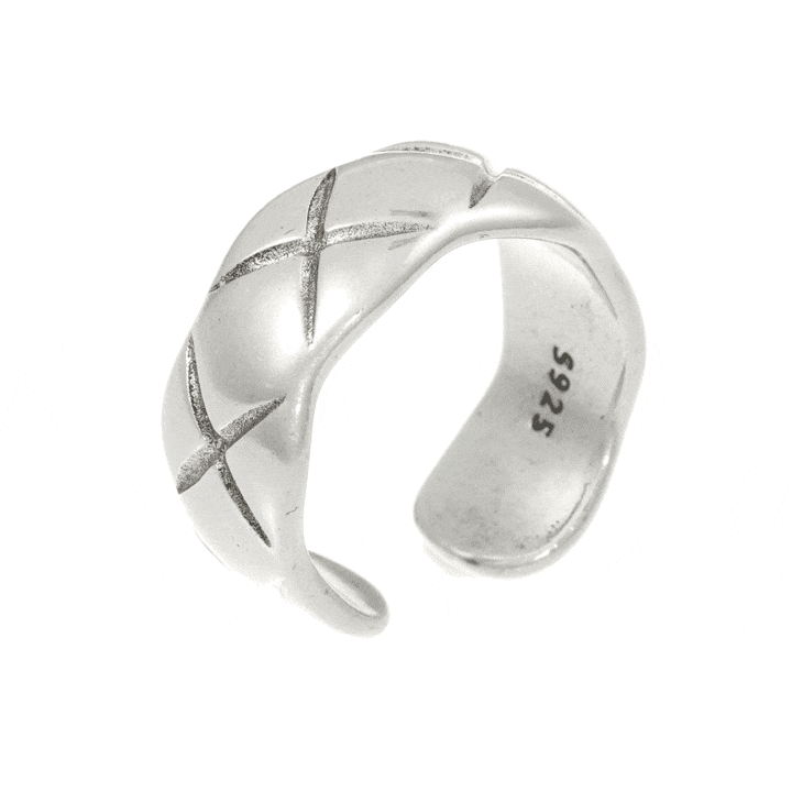 해당 제품은 제작 공정상 반지마다 선(퀼팅 무늬)의 깊이나 위치에 미세한 차이가 있을 수 있습니다. 이는 제품의 결함이 아닌 공정상 발생하는 자연스러운 현상입니다. 이로 인한 교환 및 반품은 어려우니 신중한 구매 부탁드립니다.