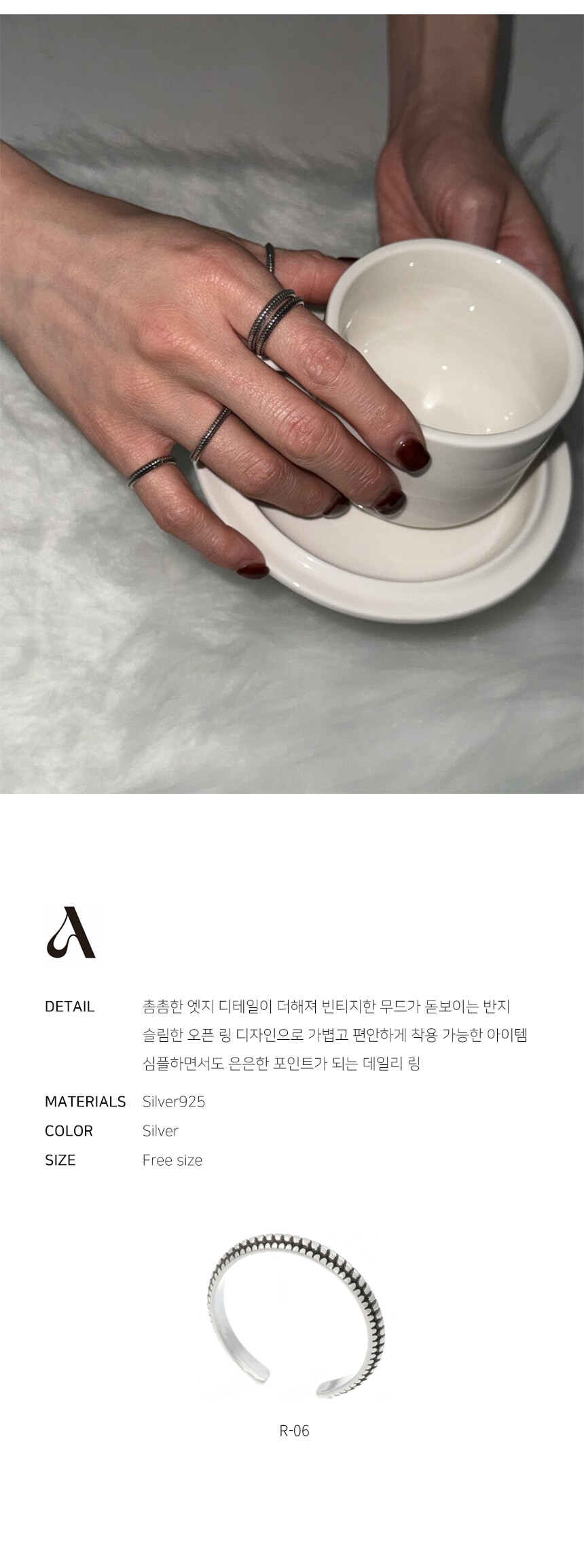 주의사항 : 실버 925는 부드러운 금속이라 조절은 가능하지만,과한 힘을 한 번에 주면 형태가 틀어질 수 있습니다.반복적인 조절은 금속 피로를 유발할 수 있으니 최소한의 조절만 해주세요.